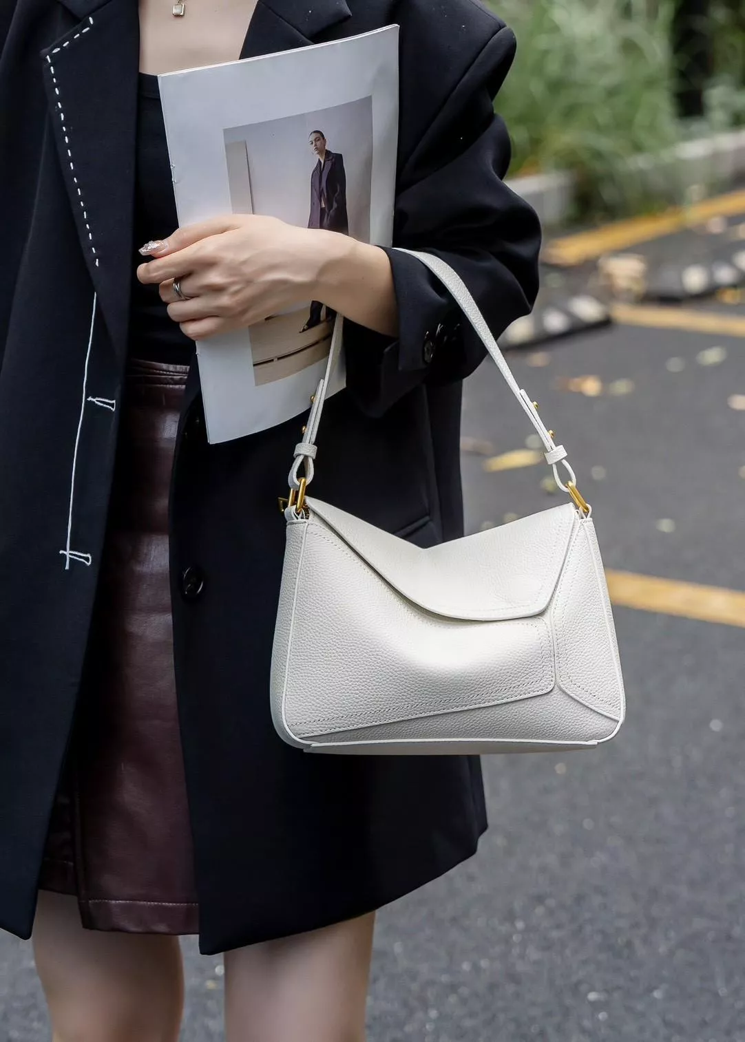 幾何拼接兩用提包-白色