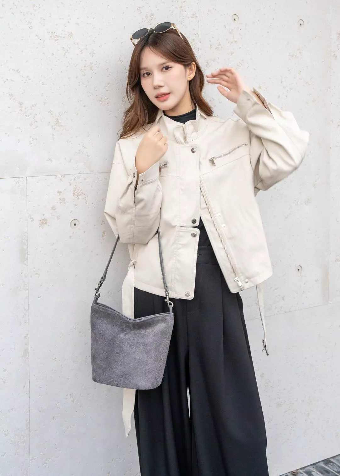 材質:麂皮牛皮配超纖皮革、內裡-精織厚質布、銀色金屬 / 鋼材拉鍊
